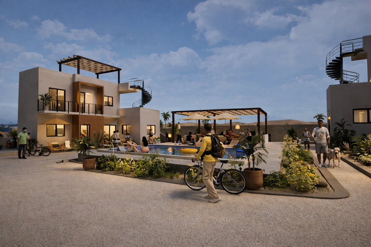 Villa Los Barriles is a new residential development that combines contemporary architecture, communal spaces designed for socializing, and a relaxed lifestyle inspired by Baja. The project consists of eight apartments distributed across four buildings, each with two independent units.